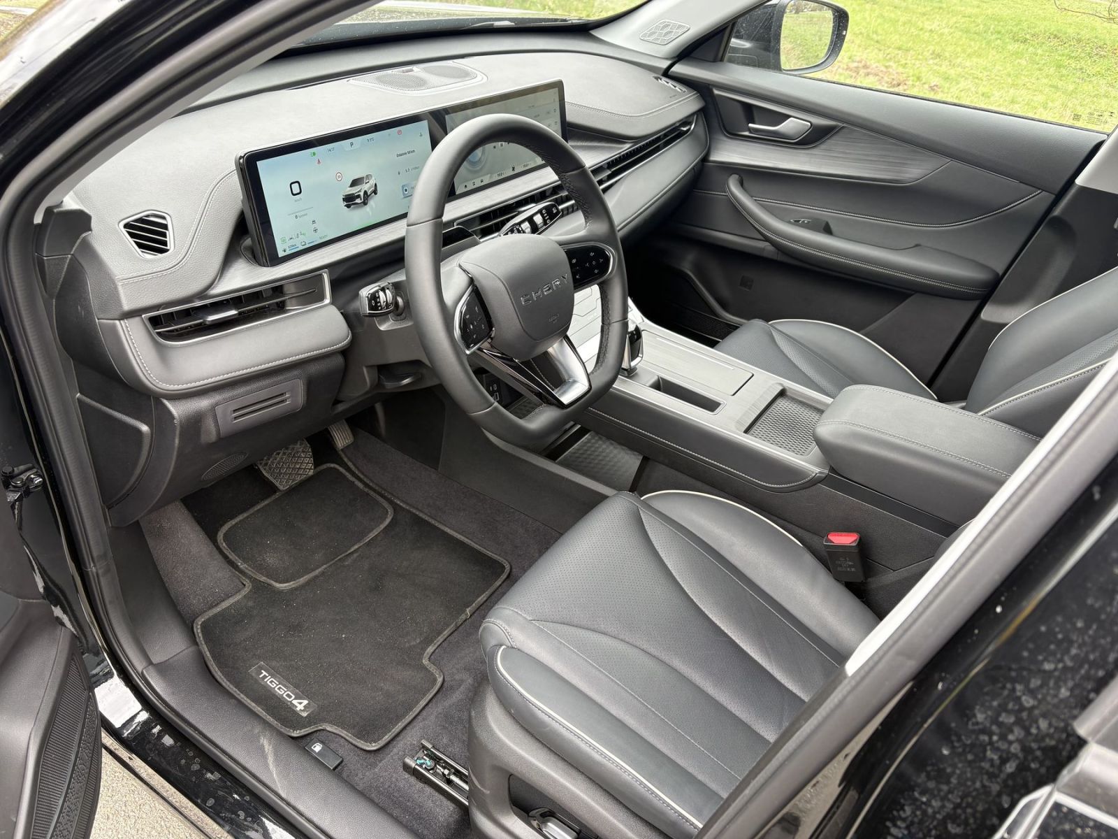 Tiggo 4 wyposażono w układ hybrydowy typu HEV, a więc we własnym zakresie doładowujący relatywnie mały akumulator (1,83 kWh), znajdujący się pod podłogą w obszarze przednich foteli. Dzięki specjalnej, przekładni wielobiegowej dedykowanej właśnie tego typu hybrydzie, bez naszego udziału optymalnie współpracuje silnik spalinowy R4-1.5-95 KM oraz 204-konny EV, wykorzystywany również jako generator. Ta współpraca najwyraźniej układa się bardzo dobrze, bo dysponując mocą 163 KM nie odczuwamy drgań, jest cicho, w miarę dynamicznie (0-100 kmh w 8,9 s) i co najważniejsze oszczędnie. Jeżdżąc po mieście auto zużywa 4,5-5,5 l/100 km, na trasie ok 6 l, a średnio wychodzi ok 5,3 l/100 km. Biorąc pod uwagę rozmiar pojazdu jak i jego masę blisko 1,5 tony, osiągi jak i komfort sprawiają, że przyjemnie jeździ się ‘czwórką’. Na śliskiej lub luźnej nawierzchni występuje lekka podsterowność, wynikająca z umieszczenia całego zespołu napędowego z przodu. Dzięki prześwitowi 14,2 cm i dużym kołom o wysokich bokach nie musimy bać się marnych, pofalowanych nawierzchni, pamiętając jednak, że nie jest to samochód terenowy.