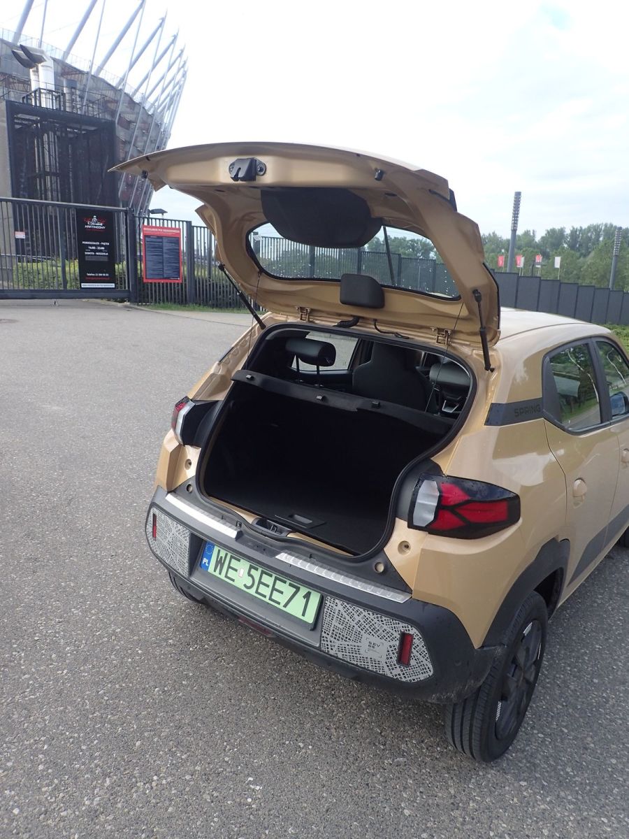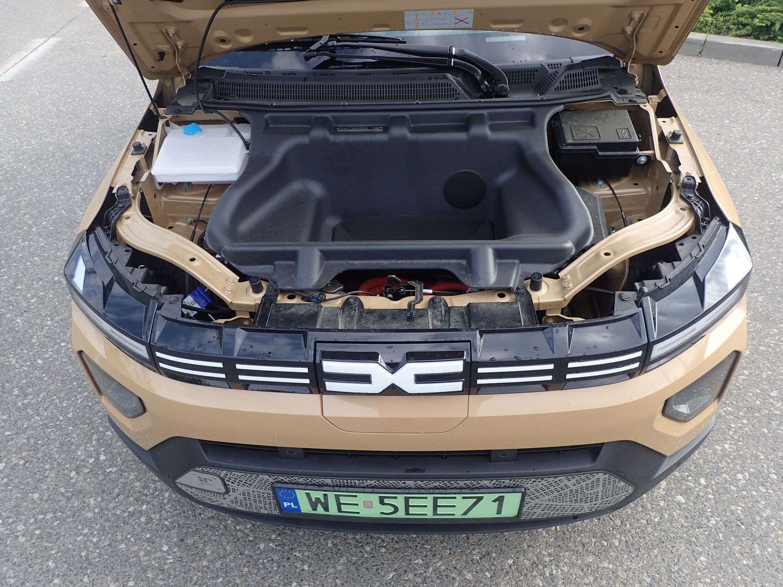 Oceniając samochód ‘budżetowy’ musimy wziąć pod uwagę założenia jakie wiążą się z segmentem i charakterem pojazdu. Odbierając testową Dacię Spring przypomniałem sobie co mówili styliści różnych ośrodków designu na temat koncepcji nowoczesnego auta miejskiego. Ich zdaniem nie powinna być pomniejszeniem zwykłego pojazdu małolitrażowego. Wiele firm stworzyło innowacyjne auta koncepcyjne, ale – nie licząc 2-miejscowego Smarta, praktycznie żadne z nich nie weszło do produkcji wielkoseryjnej. Koncepcja Dacii Spring w zasadzie jest tradycyjna, ale napęd elektryczny sporo wniósł. W małym stopniu ogranicza przestrzeń użytkową i co niemniej ważne, dzięki niemu odznacza się relatywnie nisko położonym środkiem ciężkości, bo akumulator trakcyjny umieszczono pod podłogą tylnych siedzeń. Zespół napędowy zajmuje tak mało miejsca, że pod maską pomieszczono jeszcze spory pojemnik bagażowy.