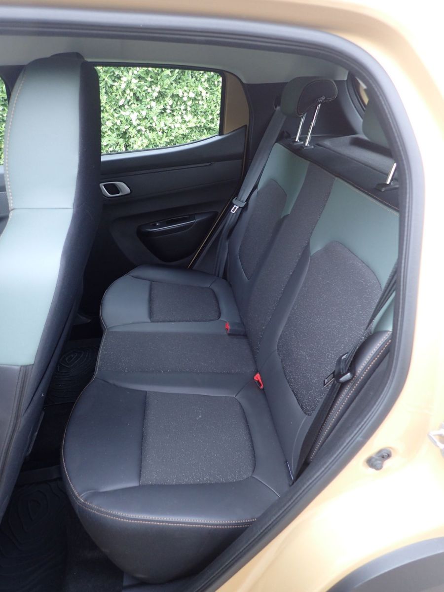 Dla mnie Spring ma wygodne fotele, a nawet dobrze wyprofilowane zagłówki. Osoby które wsiadają i chcą otworzyć lub zamknąć okno, nie mogą znaleźć włącznika. Może warto by były białe tak jak kilka innych elementów we wnętrzu. Klasyczny hamulec ręczny umieszczony pod podłokietnikiem środkowym jest trudno dostępny. A sięgać musiałem często, bo nie znalazłem pozycji P w dźwigni ‘biegów’. Po tym jak usiądę wygodnie z przodu, i nie zmieniając pozycji fotela, nie ma szans żeby usiąść za mną. Na krótkim odcinku można fotel trochę podsunąć, ale na dłuższym odcinku nie da się jechać w kucki. Po stronie pasażera jest luźniej, więc 3 dorosłe osoby i dziecko spokojne mogą jechać.