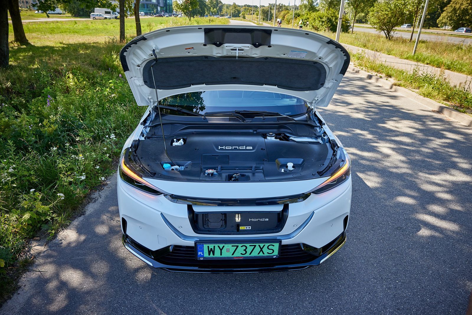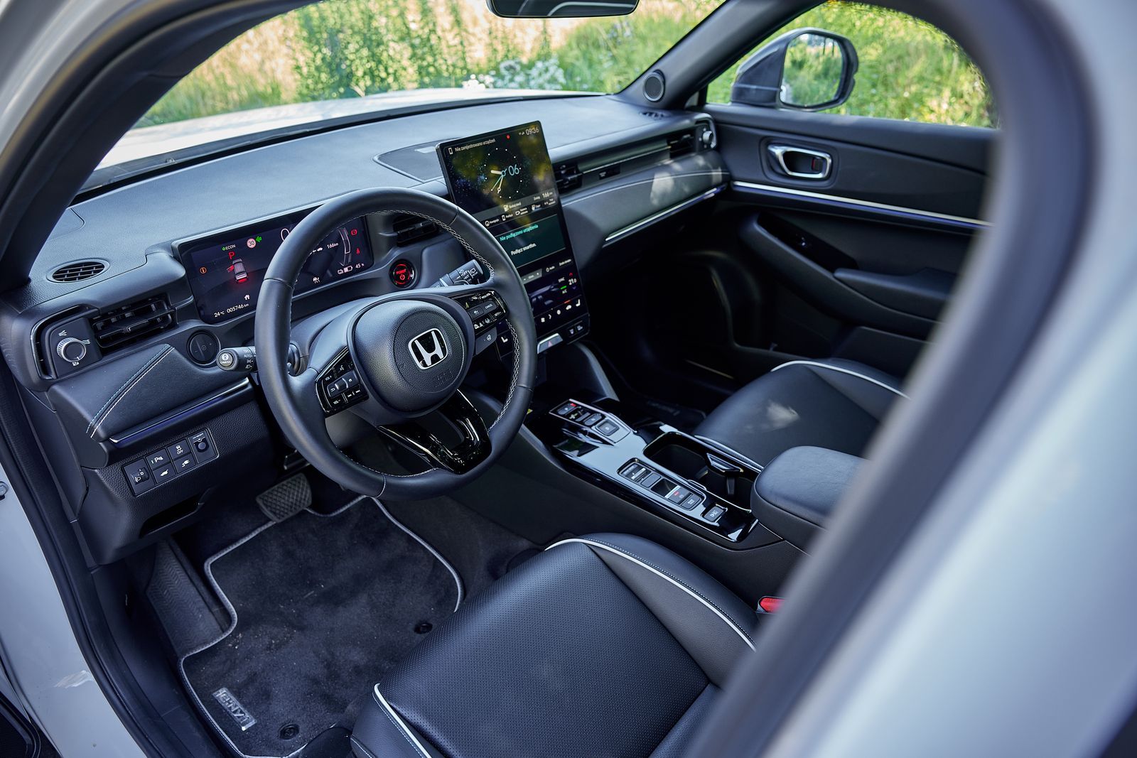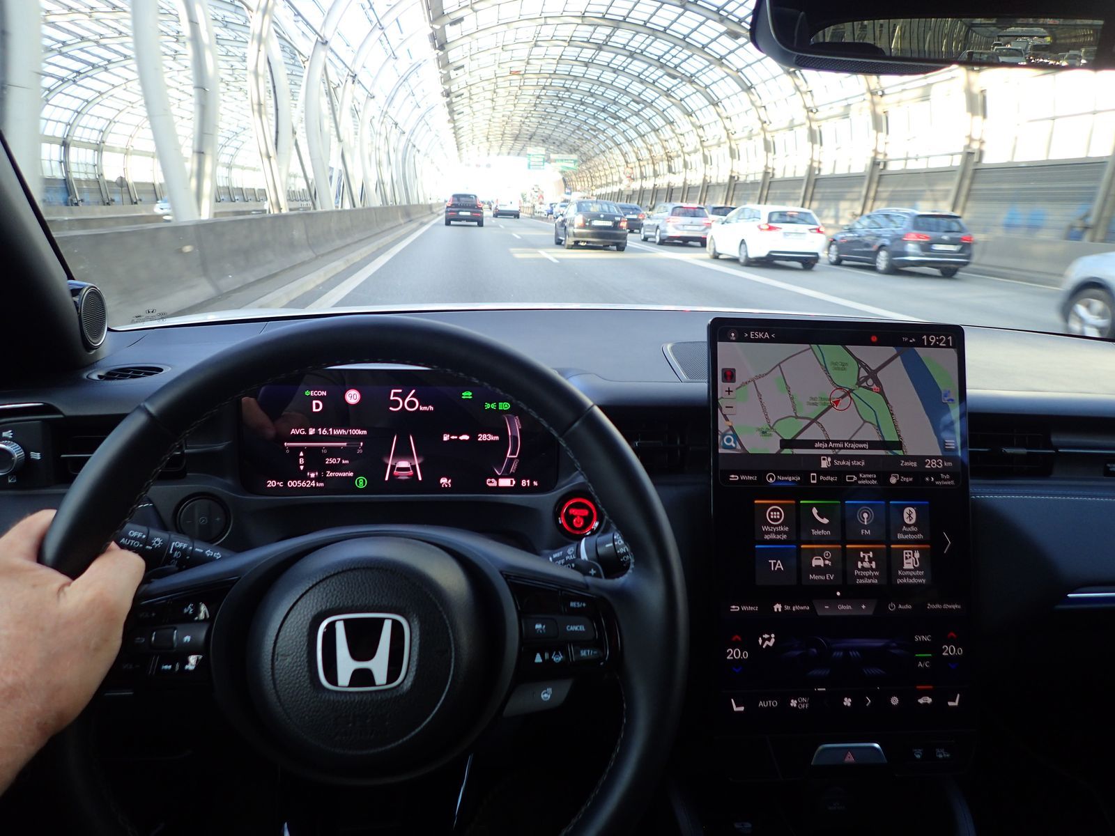 Już po pierwszych kilometrach pokonanych w mieście łatwo dojść do wniosku, że Honda doskonale sprawdza się w warunkach wzmożonego ruchu i utrudnionego parkowania. W każdej sytuacji jej prowadzenie przychodzi z dziecinną łatwością. Do tego zadania dobrze dobrano wszystkie zespoły. Auto jest komfortowe, zapewnia dobrą widoczność dookoła nadwozia, nikomu nie brakuje w nim miejsca, obsługa jest bezproblemowa. Zestaw wskaźników za kierownicą spokojnie mógłby być nawet mniejszy, ale jest ok. Non-stop widzimy licznik kilometrów, aktualny zasięg oraz średnie zużycie energii (ok 16,6 kWh).