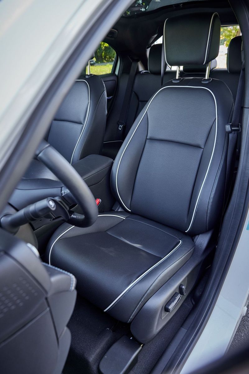 Przy odbiorze auta odnotowaliśmy zasięg 329 km, natomiast po przejechaniu 305 km spadł o 295 km. Jest to korzystny wynik, zwłaszcza, że nie robiłem niczego co miałoby zaoszczędzić energię. Producent określa maksymalny zasięg na 412 km. Moc umieszczonego z przodu silnika elektrycznego wynosi 204 KM. Ważące 1665 kg auto rozpędza się w 7,6 s do setki, a prędkość elektronicznie ograniczono do 160 kmh. Wysoki moment obrotowy (310 Nm) sprawia, że przednie opony lubią piszczeć podczas przyspieszania – zwłaszcza na łuku.