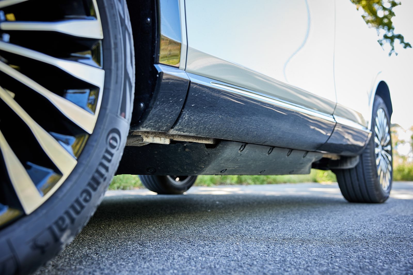 W e:Ny1 zmieniono cały wystrój twarzy, by nadać mu więcej indywidualnego, bardziej typowego dla elektryków wyglądu. Kontrowersje wzbudza umieszczony z przodu panel ładowania. Wystarczy minimalna stłuczka, by mieć duży problem. Warto też uważać zjeżdżając z równej nawierzchni, bowiem tak na optykę wydaje się, że prześwit sięga ok 25 cm, tymczasem zestaw akumulatorów (68,9 kWh) ułożony pod podłogą, wygląda jak podwieszona szuflada, pod którą pozostaje prześwit zaledwie 15,5 cm. Jednak e:Ny1 z założenia nie jest samochodem terenowym lecz rekreacyjno-miejskim crossoverem.