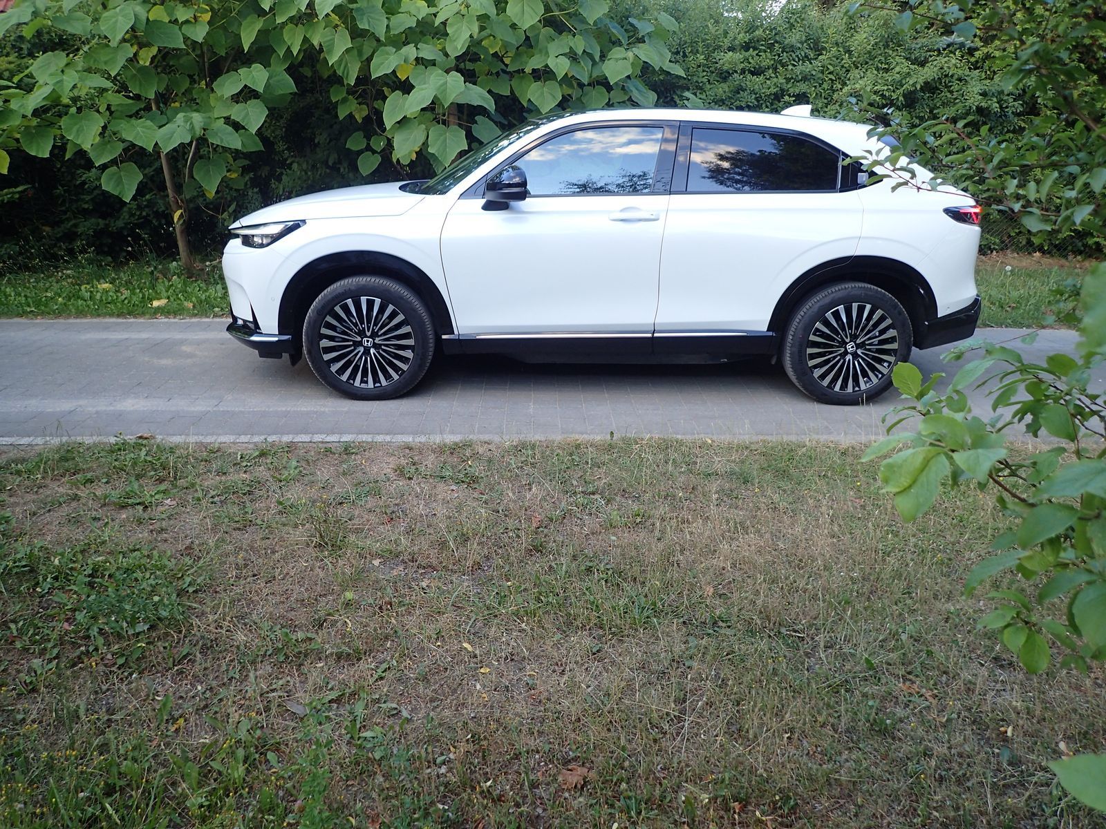 Trzy lata temu Honda wprowadziła trzecią generację modelu HR-V, po czym rozbudowała tę rodzinę aut. Najnowszym jej dziełem jest crossover e:Ny1 o napędzie elektrycznym. Każdy kto go widział, zapewne skojarzy tę sylwetkę z HR-V. Nie da się bowiem przeoczyć takich cech obu wersji jak duży rozstaw osi (261 cm przy długości 439 cm), wysoko poprowadzona dolna linia okien i na tym samym poziomie utrzymana linia maski oraz ‘twarzy’. Uwagę zwraca również mocno pochylony tył nadwozia – a la coupe.