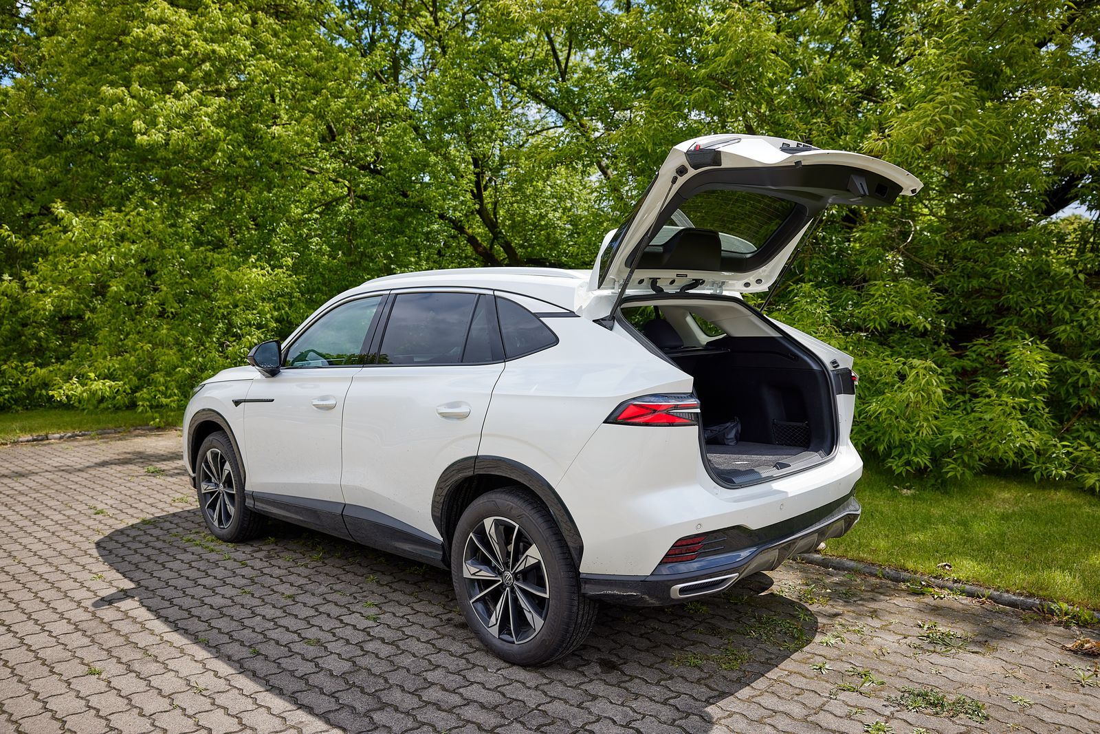 Wysokość wnętrza mierzona od górnej krawędzi przedniej szyby do podłogi to 114 cm, natomiast szerokość na wysokości łokci 149 cm. Podłoga przed fotelem kierowcy znajduje się 37,5 cm nad nawierzchnią. Z kolei prześwit pod nią to 18 cm. Odległość oparcia odsuniętego do tyłu fotela od pedału hamulca to 107 cm, w tej pozycji między oparciami z tyłu pozostaje 73 cm. Bagażnik ma pojemność 507 l, jego podłoga znajduje się na wysokości 77 cm. Pod nią znajduje się zestaw naprawczy, ale gdy wyjmiemy plastikową wytłoczkę zmieścimy koło zapasowe. Mierząc od spodu, pokrywa bagażnika unosi się na wysokość 184,5 cm i nie ma ostrych kantów. Koła mają rozmiar 225/55-19, koło ma wysokość 70,5 cm, felga toczy się 8 cm nad nawierzchnią.