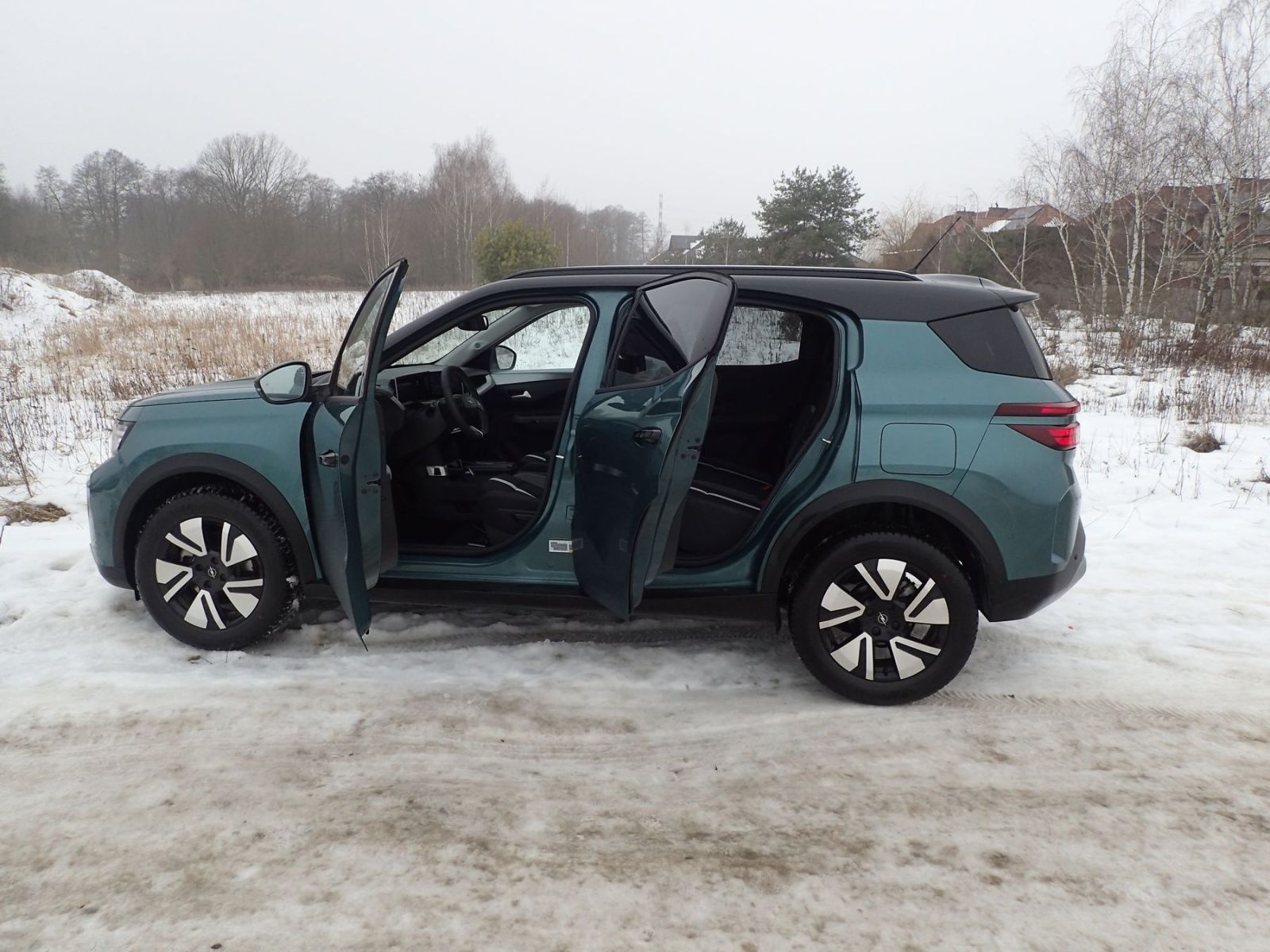 Ciekawe jest to, że jeszcze nie tak dawno podczas przemieszczania się po mieście nowym modelem, sporo osób natychmiast wyłapywało go wzrokiem. Dziś, najprawdopodobniej na skutek całej masy nieznanych aut, w dużej mierze nieznanych marek i znaków firmowych, Opel Frontera nie wzbudza wielkiego zainteresowania. I to może okazać się jej atutem, bo nie każdy życzy sobie wywoływania sensacji. Swoją drogą nadal nie rozumiem dlaczego logo Opla uczyniono niewidocznym, czyżby Stellantis wstydził się tej marki? Z pewnością tak nie jest, przecież inwestuje w nowe modele, nawet jeśli metodą daleko posuniętej synergii. Zarówno rozstaw osi 267 cm jak i gabaryty na czele z długością 438,5 cm świadczą o wspólnym projekcie z Citroenem. Zresztą widać to po nadwoziu; ta sama idea i proporcje, natomiast zróżnicowanie przedniej oraz tylnej jego części. Uwagę zwracają wyjątkowo długa druga para drzwi, mająca zapewnić wsiadanie i zajmowanie miejsc w trzecim rzędzie siedzeń. Nasz egzemplarz testowy był 5-miejscowy, więc ocenę tej części wnętrza pozostawiamy do jazd wersją 7-miejscową.W każdym razie w 5-miejscowej miejsca na nogi jest pod dostatkiem.