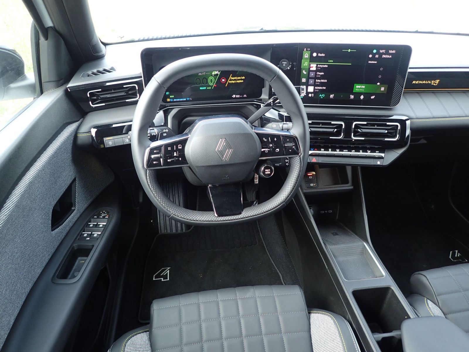 Jazda Renaultem 4 E-Tech Electric jest bajeczna; dynamiczna, cicha i komfortowa. O ile R5 ma nieco sztywniejsze sportowe zawieszenie, w R4 jego charakterystyka wydaje się bardziej łagodna, co odczuwamy pokonując nierówności nawierzchni. Na w miarę równej drodze auto płynie. Testowany przez nas model to R4 iconiq EV52 150 hp comfort range z baterią 52 kWh (masa 297 kg) oraz silnikiem o mocy 150 KM. Auto ważące 1529 kg odznacza się zasięgiem 409 km i przyspieszeniem w 8,2 s do setki. Ładowanie akumulatora od 15 do 80% trwa 30 minut.