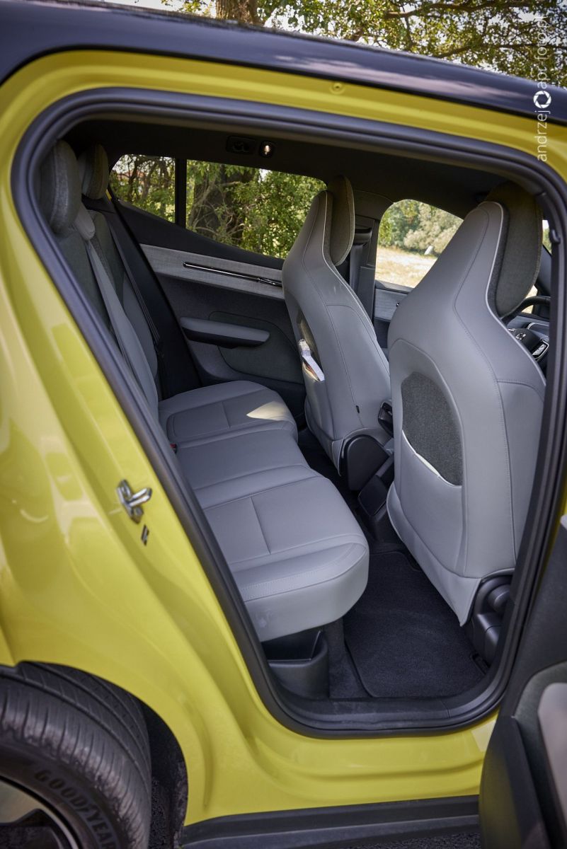 Kiedy po raz pierwszy otworzyłem drzwi tego auta, od razu uwagę zwróciła wysoko położona podłoga. Jest to pewien mankament samochodów elektrycznych z akumulatorami umieszczonymi w podłodze – ale jak to się mówi – coś za coś. W ten sposób od spodu ucięta zostaje przestrzeń wnętrza – tym bardziej im większy chcemy mieć prześwit. W modelu EX30 podłoga w pobliżu pedałów znajduje się na wysokości 38 cm (w Renault Megane E-Tech Electric – 33 cm, VW ID.3 – 35 cm). Ale trzeba wziąć pod uwagę, że ten model Volvo jest crossoverem, więc ma zwiększony prześwit pod podłogą 16,5 cm (Megane 13,5 cm, ID.3 12 cm).
