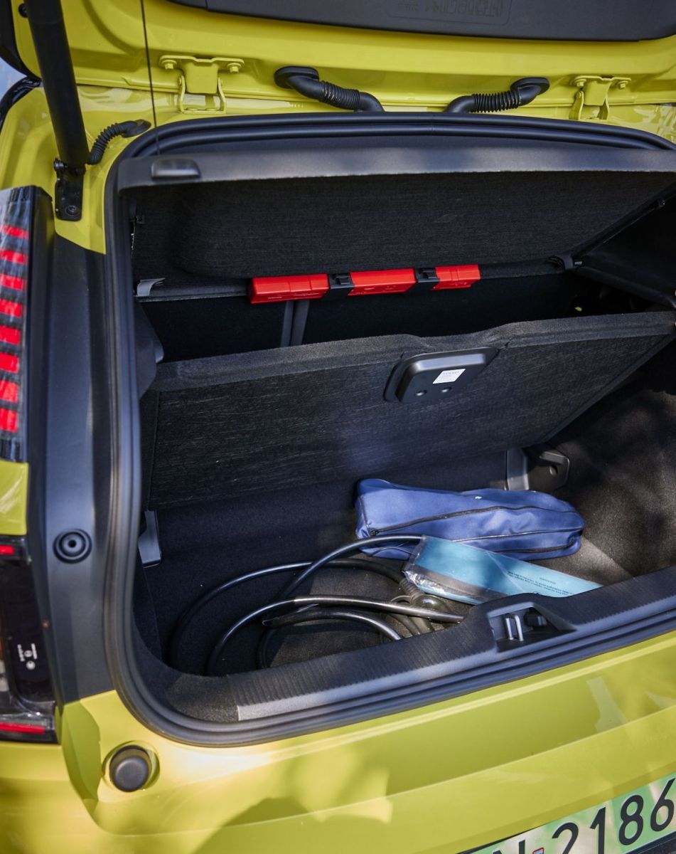Biorąc pod uwagę fakt, iż silnik znajduje się na osi tylnych kół, można było się spodziewać sporej nadsterowności. I rzeczywiście przez chwilkę daje się odczuć walkę ESP z prawami fizyki, ale nawet po wyłączeniu tego systemu, samoczynnie się aktywuje, by uniknąć sytuacji, w której kierowca mógłby sobie nie poradzić na śliskiej lub luźnej nawierzchni. Osadzenie silnika z tyłu pozwoliło zwiększyć skręt przednich kół, dzięki czemu manewr zawracania powinien zawsze powieść się, a poza tym umożliwiło to wygospodarowanie pod maską miejsce na dodatkowy, zamykany schowek. Skoro zaglądamy pod maskę, to warto zwrócić uwagę na porządek jaki uzyskano z umiejscowieniem wszelkich króćców służących do uzupełniania cieczy (odchylana listwa za schowkiem). Jeśli ktoś był nauczony sprawdzać poziom oleju, to temat w elektrykach jest nieaktualny.
