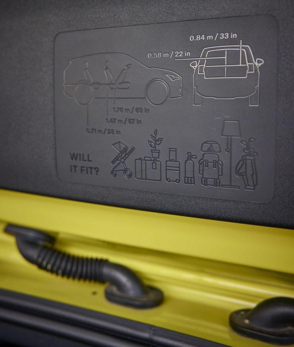 Tylna klapa elektrycznie otwiera się na wysokość wewnętrzną 180,5 cm. To oznacza, że osoba wyższa może uderzyć o zamek, ale na szczęście na całej klapie nie ma ostrych krawędzi. Bagażnik ma pojemność 234-904 litrów. Podłoga znajduje się na wysokości 72,5 cm, przy czym pod nią jest jeszcze przestrzeń z podłogą położoną 14,5 cm niżej. Koła zapasowego niestety nie doszukamy się. A propos kół mają one rozmiar 245/45-19 i wysokość całkowitą 69 cm. Choć felgi w stylu aero wydają się bardzo duże, toczą się one 7,8 cm nad nawierzchnią, a tym samym nie są jakoś ekstremalnie narażone na uszkodzenia.